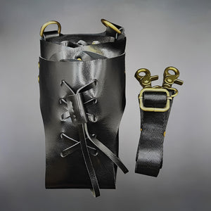 "This cross-laced holster is something special - the leather thonging isn't just beautiful, it's incredibly practical! Love how you can adjust the tension to perfectly secure your tools. Been using it for my full set of Yasaka cutting shears plus my texturizers and even a Kamisori razor. The rope strap system is rock solid.. really gives you confidence when you're moving around the salon. The brass hardware perfectly complements the black leather, and the craftsmanship is outstanding. What really impresses me is how it manages to be both elegant and highly functional. The cross-lacing lets you customize the fit exactly how you want it. If you're looking for something that combines artisanal quality with serious tool protection, this is definitely worth the investment!"