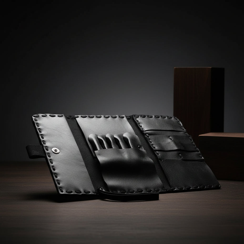 "After trying loads of cases for my premium shears, this woven leather wallet is something special. Love how the hand-woven border isn't just beautiful - it actually reinforces the edges where you'd usually see wear! The cotton-lined compartments are perfect for my Juntetsu and Kasho scissors.. keeps them from scratching against each other. The extra pockets are brilliant for my texturizing shears and Kamisori razor. Been using it daily in the salon for months now and the leather just gets better with age. If you've invested in quality tools, this is exactly the protection they deserve!"
