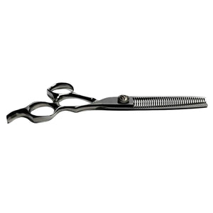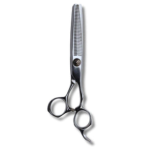 "The Kamisori Diamond Thinning Scissors excel in advanced texturizing techniques. Their super fine 30 teeth design shines in precision thinning and blending, while the 3D Convex edge allows for seamless point cutting. These versatile scissors adapt effortlessly to various texturizing methods, making them indispensable for creating sophisticated, textured styles without compromising hair integrity."