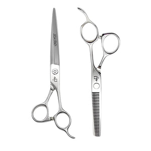 Crafted from premium 440C steel with optimal hardness, both scissors provide exceptional edge retention and durability through thousands of cuts. The matching steel quality ensures consistent performance across both tools while delivering the perfect balance of strength and precision that professional stylists demand.