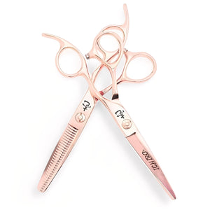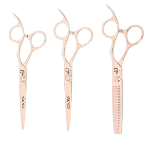 Why settle for switching between wet and dry cutting when you can have dedicated tools? Two cutting scissors in your choice of sizes, plus our versatile thinning scissors. All featuring revolutionary 2030s edge technology and that show-stopping rose gold finish that photographs don't do justice.