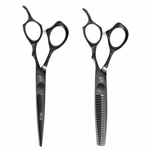 Mina Ash Black Cutting & Thinning Set - The ultimate combination for professional hairstylists, featuring the precision of Mina Ash Black Cutting Scissors alongside the versatility of Mina Ash Black Thinning Scissors.