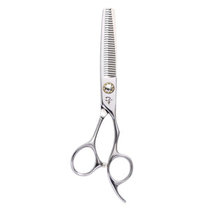 "The Ichiro Offset Hairdressing Scissor Set shines when it comes to exact cuts and adding texture, largely due to its convex-edged blades. These shears really show their worth during slide cutting and point cutting techniques. Their adaptability to different cutting styles makes them a must-have tool for hair professionals. Whether you're layering, blending, or creating intricate styles, these versatile scissors rise to the challenge."