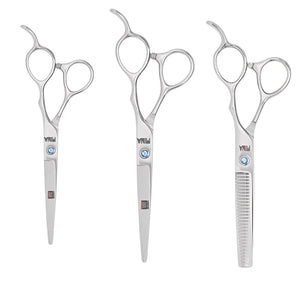 This includes 2 pairs of Mina Umi Hair Cutting Scissors and a pair of Thinning Scissors.