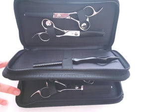 Our stylish black leather scissors pouch with stylish trim. All our leather products are Hand stitched from premium cowhide leather with cotton lining for both durability and protection.