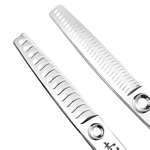 14-Tooth Chunker (35-40% Removal): The bold texture specialist. These create dramatic, visible texture and remove substantial weight in a single pass. Perfect for shags, heavily layered cuts, and removing bulk from thick hair types. Creates noticeable movement and definition – ideal for modern, lived-in styles that demand visible texture.