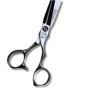 "Kamisori Sword Professional Haircutting Scissors offer exceptional precision, featuring a distinctive angled sword blade and 3D Convex edge. These scissors shine in blunt cutting and slide cutting techniques. Their versatility allows for seamless adaptation to various cutting methods, performing admirably in scissor-over-comb work and dry cutting. This range of capabilities makes them highly valued by both hairstylists and barbers alike."