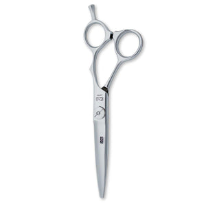 "The Kasho Green Slide Cutting Scissors excel in slide cutting and creating textured looks, perfect for detailed styling and precision cuts. They support all popular haircutting techniques."
